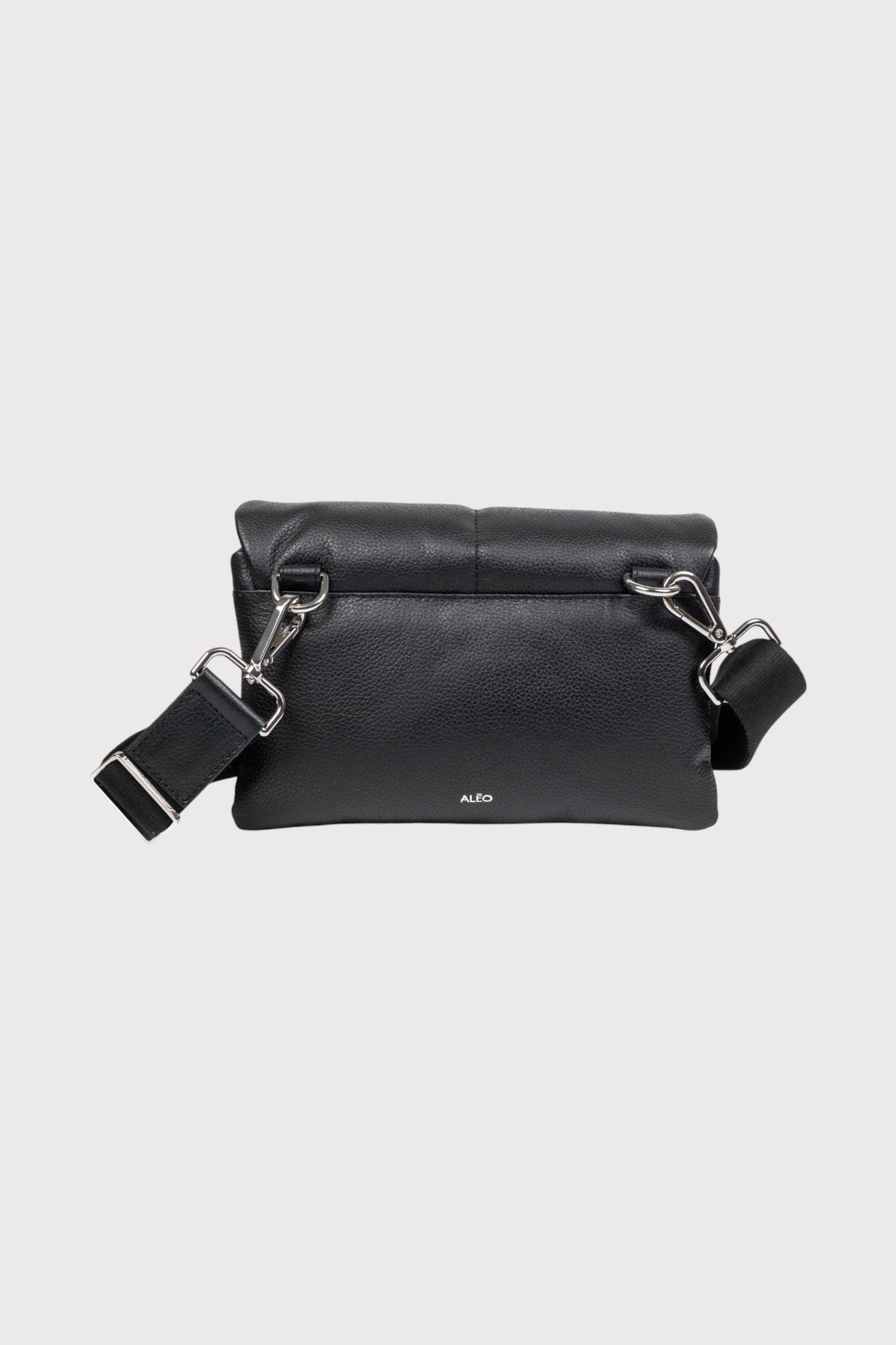 The Bobo crossbody bag in a genuine soft grained leather finish has a quilted puffer finish, with accordion style compartments and a detachable crossbody strap. The bag also features a double magnetic clasp closure and sand coloured cotton lining on the interior.