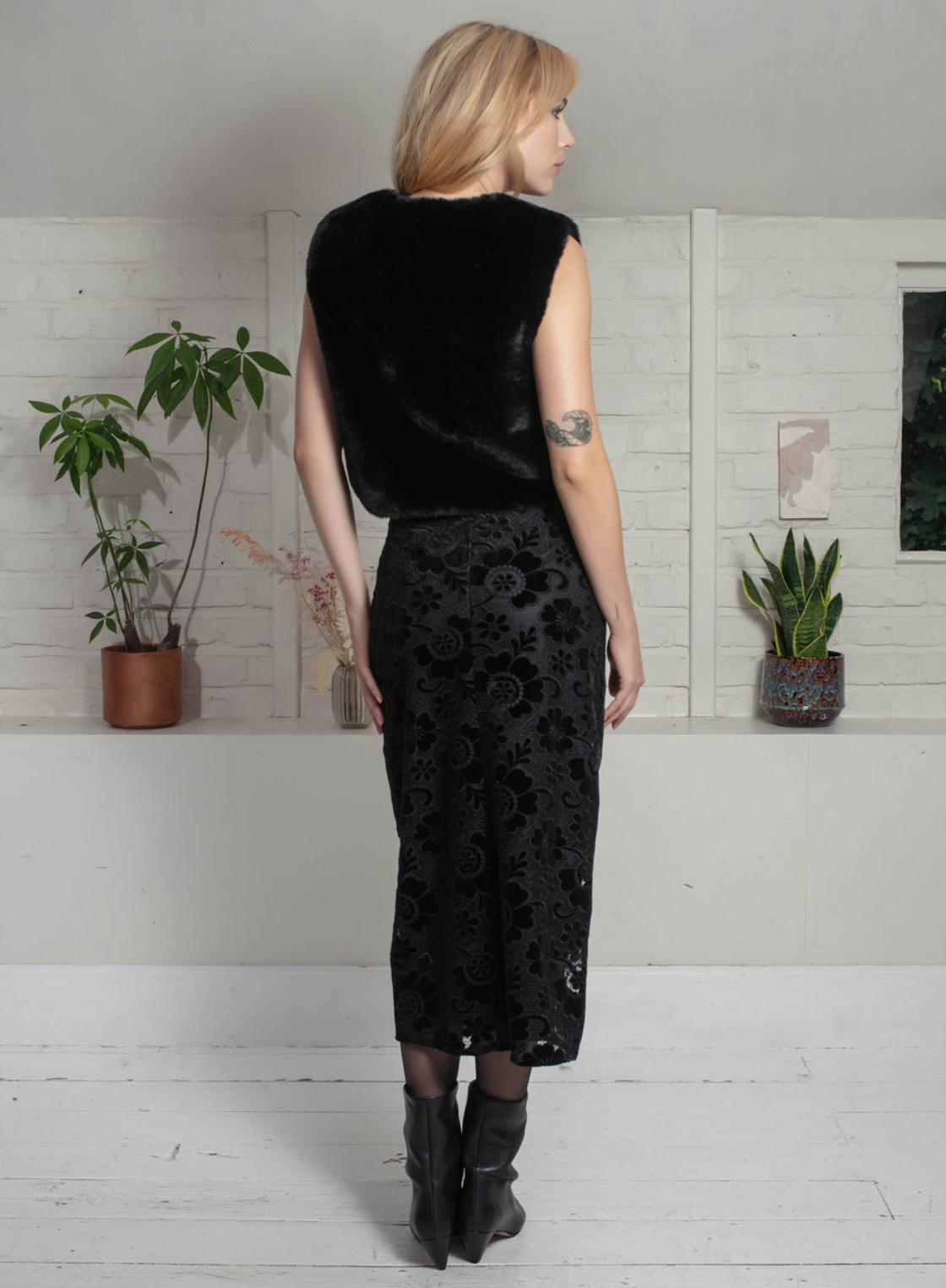 Edelweiss Faux Fur Gilet - Black