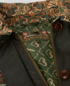 Embrace the classic British countryside while exuding vibrant Brazilian charm with the Barbour x FARM Rio Maria-Clara Waxed Jacket. FARM Rio are renowned for embodying the liveliness of a nature-infused and culturally rich lifestyle and this bold mid-length waxed jacket showcases exactly that. With its luxurious velvet ruffled collar and pocket trims, each featuring our exclusive Barbour x FARM Rio Pineapple print, this jacket is finished with a large dual branded logo patch to the chest for a statement sign-off.